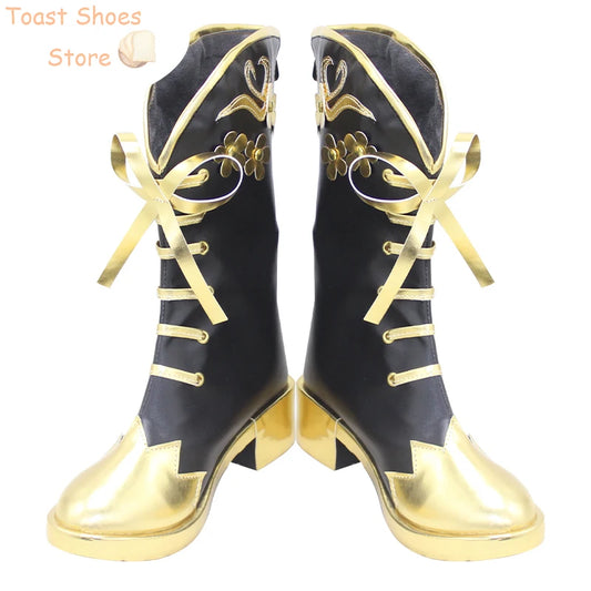 Game Twisted Wonderland Epel Felmier Cosplay Shoes Golden High Heel PU Shoes Halloween Carnival Boots Cosplay Costume Prop