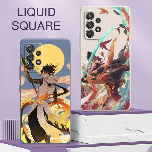 Anime Genshin Impact Square Silicone Phone Case For Samsung Galaxy A13 A14 A21S A21 A22 A23 A24 A11 A12 A02 A03 S A04 Soft Cover