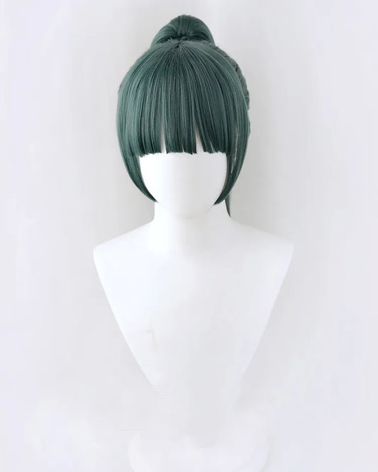 Maki Zenin Cosplay Wig Jujutsu Kaisen Cosplay High Quality 60cm Dark Green Heat Resistant Anime Cosplay Wigs + Wig Cap + Glasses