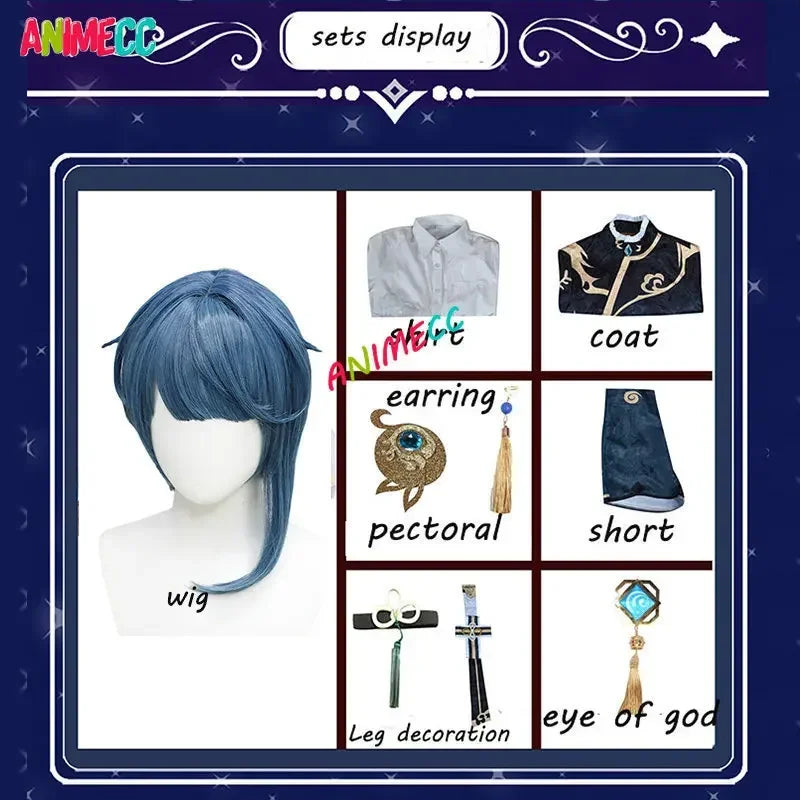 Tips;Xingqiu cosplay costume not include wig and shoes,if you want wig,you can choose color: costume and wig,