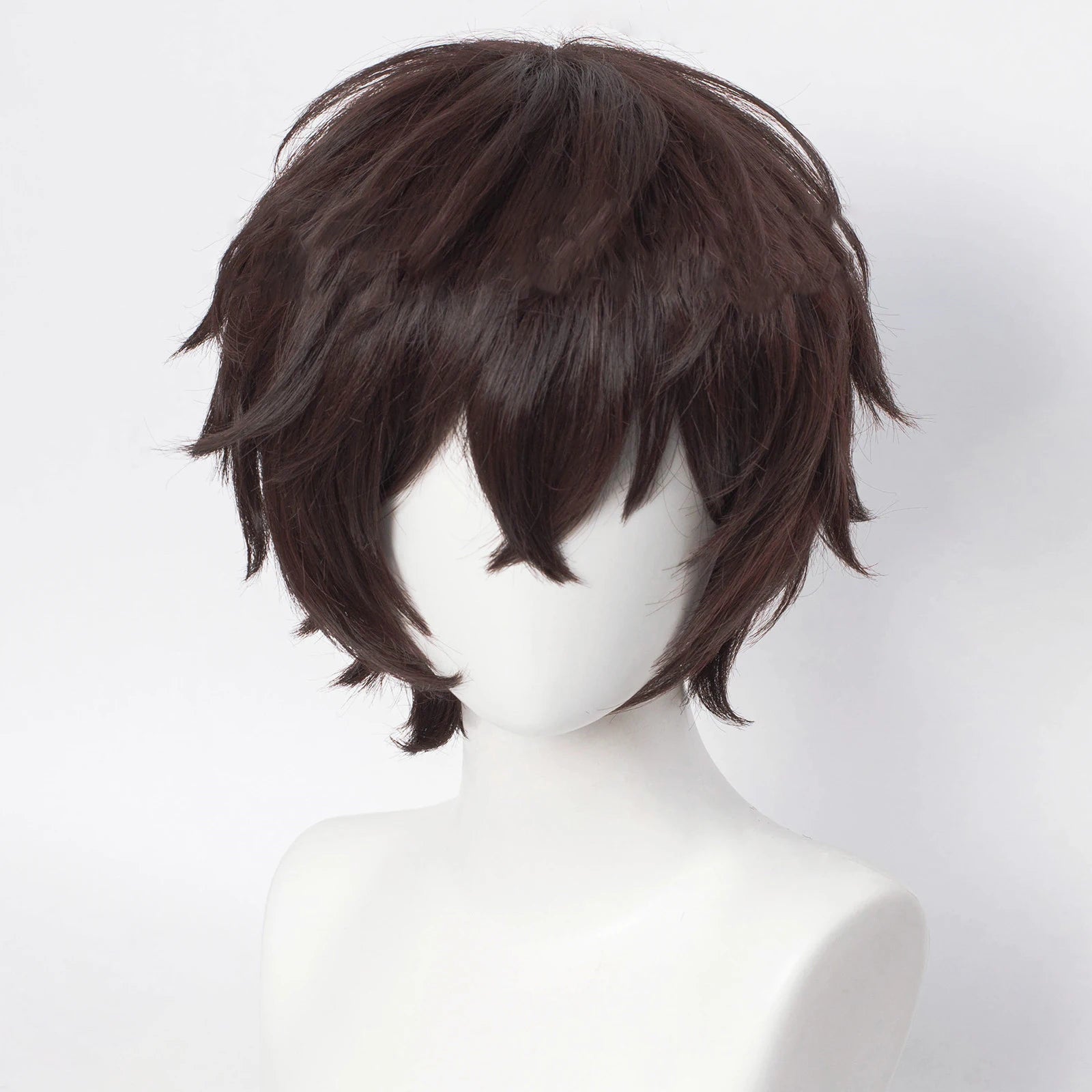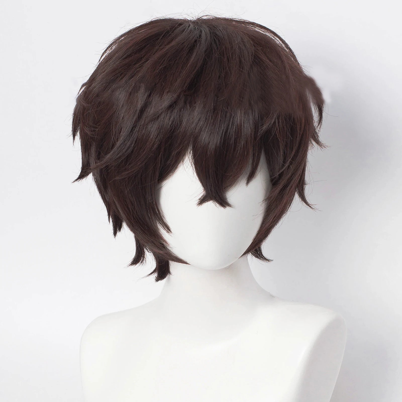 Dazai Osamu Wig Anime Bungo Stray Dogs Cosplay Short Brown Black Heat Resistant Synthetic Hair Halloween Party Wigs + Wig Cap